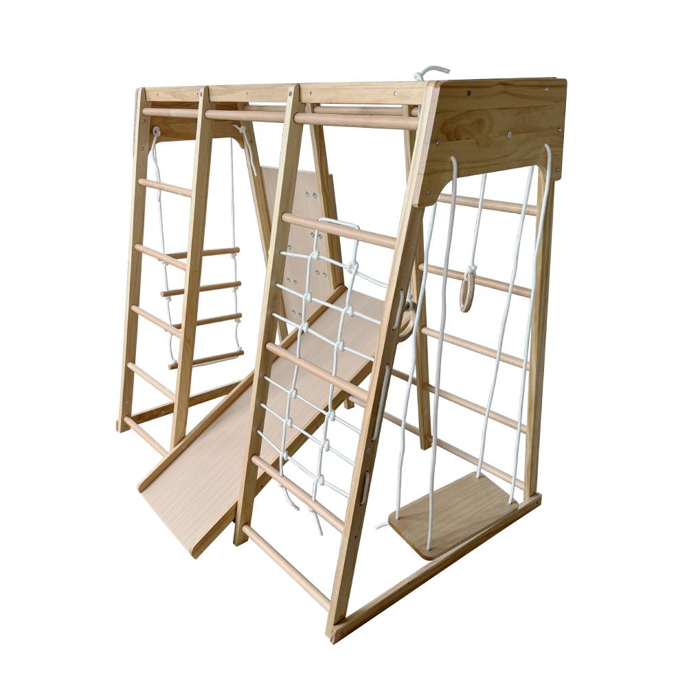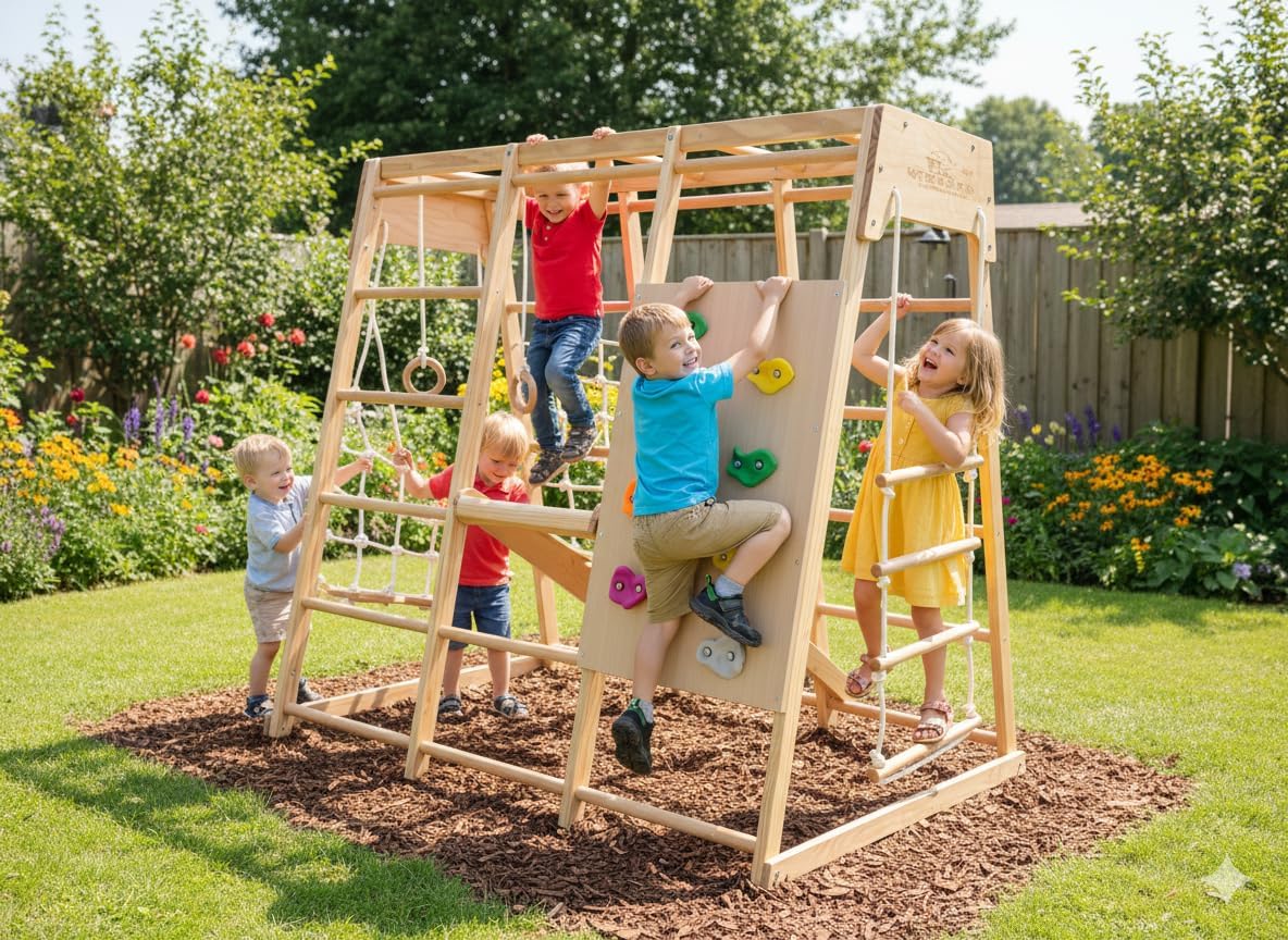 The Kiddoro Cheerful Climbers Playset is designed to promote strength, coordination, and confidence through active play. This compact outdoor playset includes a climbing wall, rope ladder, gymnastic rings, and a fun slide. Ideal for smaller outdoor spaces in the UAE and GCC, it offers a safe and engaging alternative to larger playground systems while delivering maximum play value.