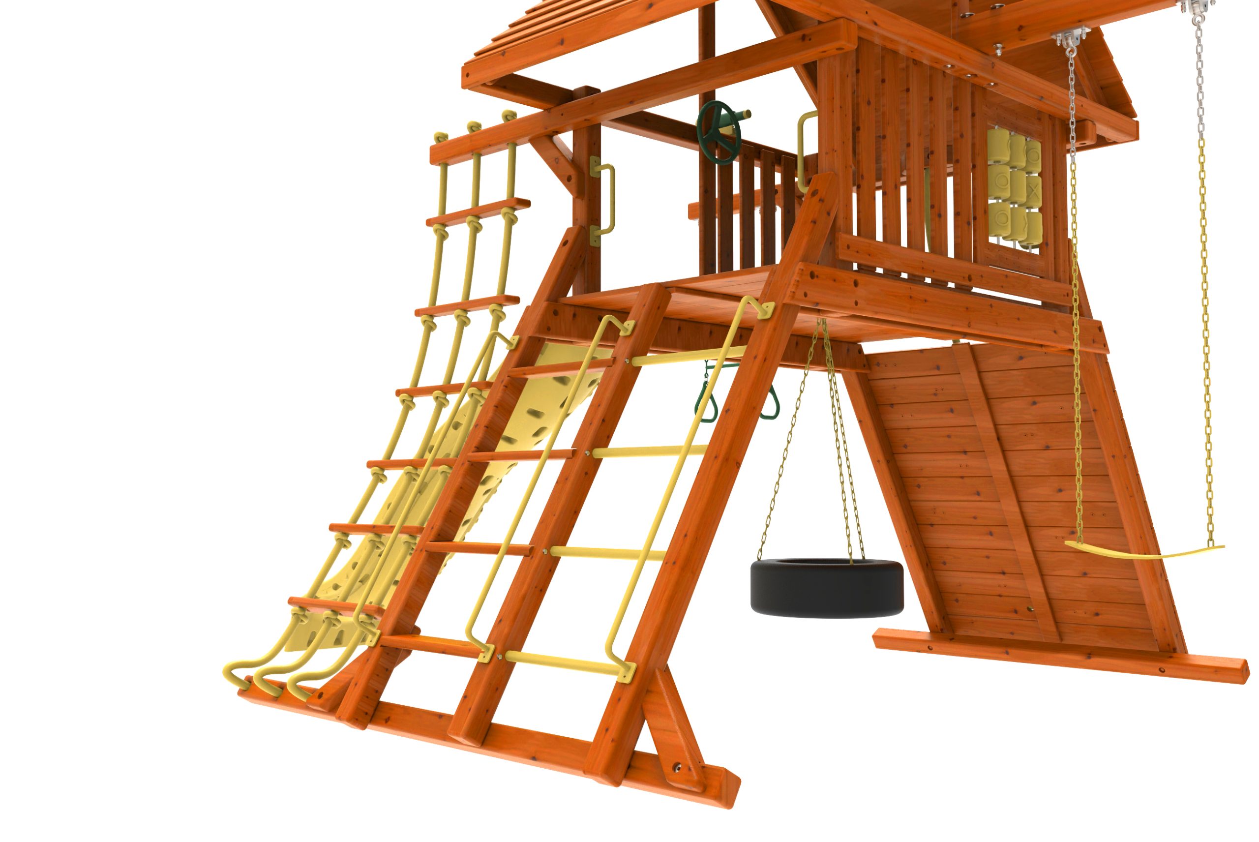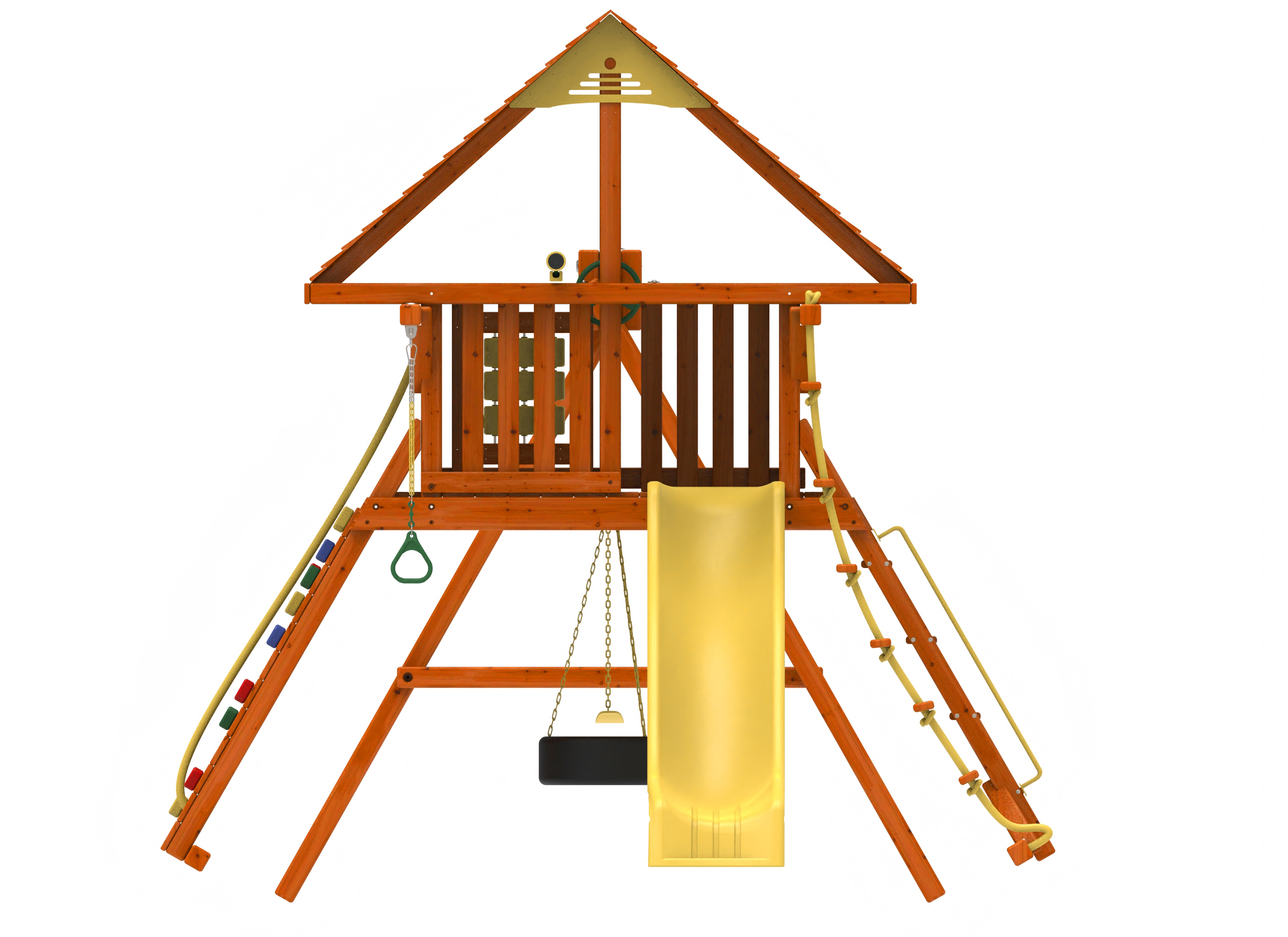 The Kiddoro Discovery Den Swing Set is a versatile outdoor playset designed to inspire exploration and active play. Featuring multiple climbing elements, swings, and a smooth slide, this swingset supports physical development and creative fun. The raised clubhouse and large play deck make it a popular choice for families and institutions throughout the UAE and GCC.