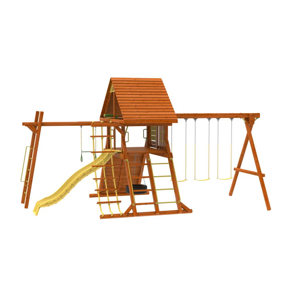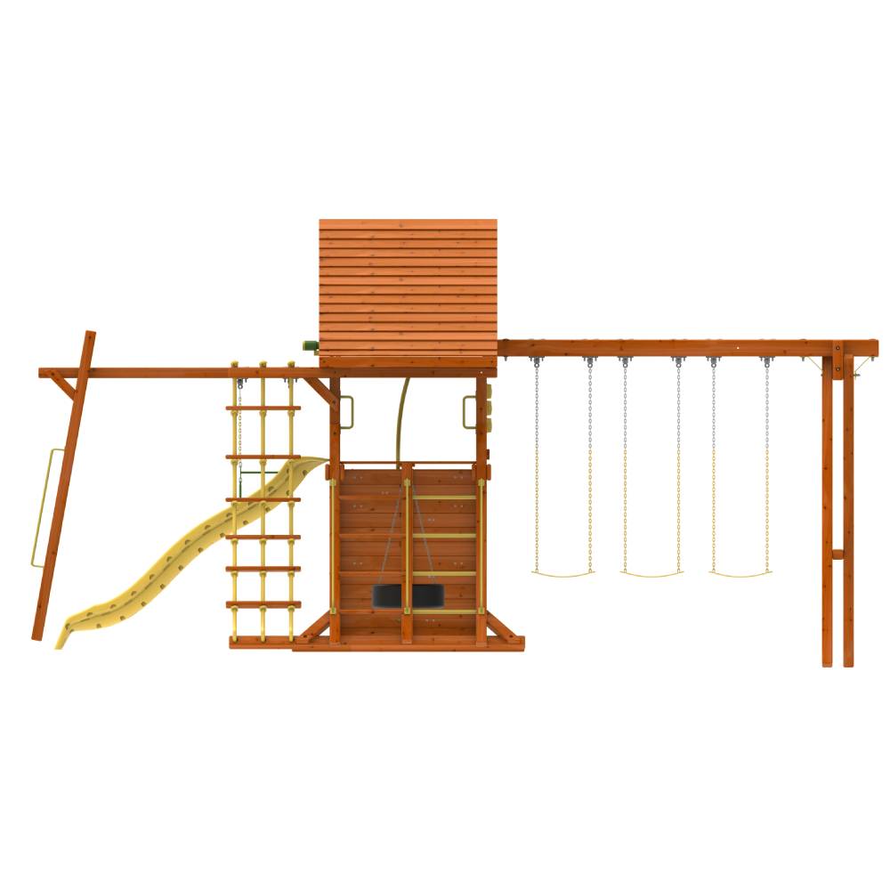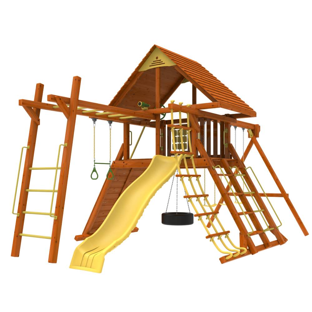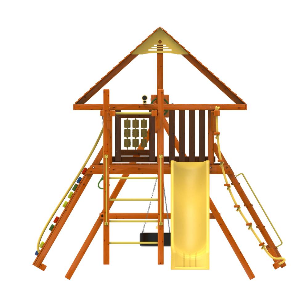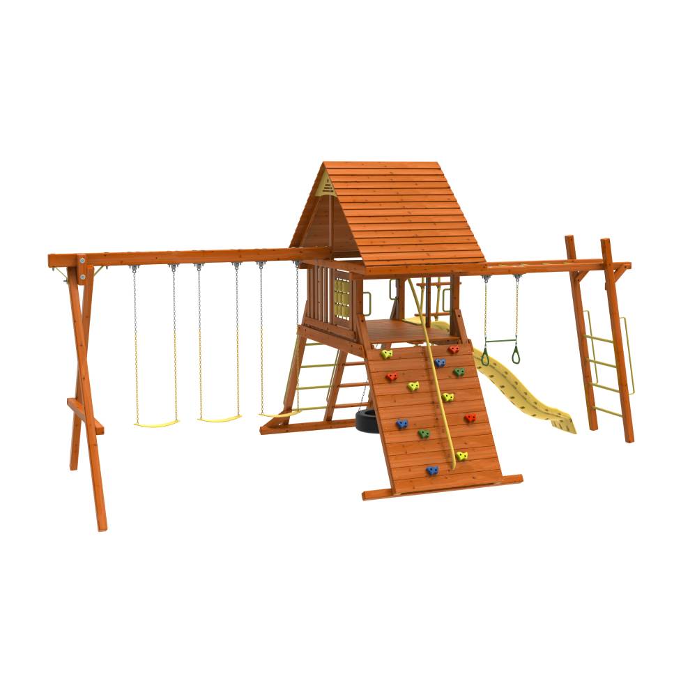 The Kiddoro Discovery Den Playset with Monkey Bars is a feature-rich outdoor playset created for adventurous kids. Equipped with monkey bars, swings, climbing options, and a fun slide, this playground system encourages strength-building and imaginative play. The elevated clubhouse and spacious deck make it ideal for homes, schools, and communities across the UAE and GCC.